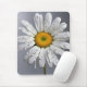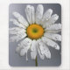 Stängning av en vit daisy med droppfällor på en mjuk övertoningsbakgrund av grått
