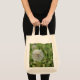 Vit dandelionblomma på grönt gräs tygkasse