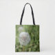 Vit dandelionblomma på grönt gräs tygkasse