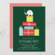 Det här är en inbjudan till en vit elefant-presentutbytes-julparty med presenter och elefantillustration.