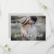 Spara vår dejt! Meddela din bröllop-dejt till familj och vänner med den här eleganten spara datumkortet. Den har blomstrande skript för elegant med klassiskt typografiskt överlägg. Anpassa genom att lägga till information om namn, datum, plats, foto och andra bröllop. Spara datum meddelande är perfekt för alla bröllop-teman och årstider. Den här designen finns som ett platta kort, magnet och vykort.