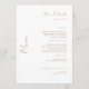 Elegant vit bröllopsmeny. Guldtext.