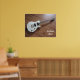 En coola med en vit elektrisk gitarr som är försedd med träbakgrund. Perfekt för ett musikrum, studio ...