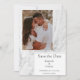 Detta Vita Enkla Marmoreringen Foto Spara Datum Annonsering kommer med en enkel textdesign, i en modern och enkel layout mot en marmorerad bakgrund som väntar på ditt foto och bröllopsdetaljer för att anpassa. Ytterligare färger finns tillgängliga med denna design.