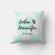 vit enkel minimal textstil bröllop blå hjärta kudde