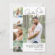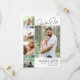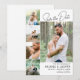 Minimalistisk fotomall bröllop spara datum-kort med fyra mindre foton och en större bild på det lyckliga paret med svarta typsnitt mot vit bakgrund. Ensidig spara datum-inbjudan i en ren och modern design med fem foton i en enkel layout för att visa dina favoritfoton för spara datum eller foton från din förlovningsfotografering. Be dina framtida gäster att spara datum för ditt bröllop med detta enkla och moderna spara datum-kort med plats för fem foton.