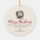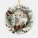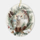 Vita får i en rustisk julandedräkt med pinekoner. Personlig (året på framsidan och texten på baksidan) Julprydnad för husdjur, får älskare.