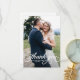 Ett fototack för anpassadet är ett platt kort med vitt feminininskript med svart och vitt blommönster. Det här platta kortet blir perfekt för bröllop, studenten och andra evenemang. Det finns ett vykort och en vikt kortversion.