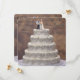 Vit femstegs bröllopstårta med brudpar, spara datumet