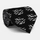 Denna noveltet Halloween-slips är täckt med en samling enkla bilder av fladdermöss som flyger tillsammans i ett molnmönster. Fladdermössen är vita och bakgrundsfärgen på slipsen är svart.
