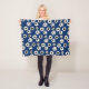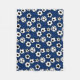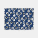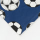En roligt och ett nätt upprepande mönster av fotbollbollar som är fastställda mot en mörk - blåttbakgrund är ideal för att hålla värme denna vinter.