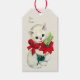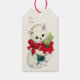 Vit förtjusande retro jul kattunge röd rosett presentetikett