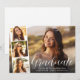 Modern, vit fotoövertäckning, platta kort för studenten-meddelande med student överlagrade bilder med tre mindre fyrkantiga foton, "Student" i ett snyggt, vitt skript och deras namn-, skola- och klassår i ren vit typografi.