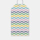 Skapad för att samordna med samlingen "Happy Merry Wavy" av julkort, har denna lekfulla presentetikett för högtiderna ett dekorativt, vågigt ramverk. Hälsningen "Happy Merry Everything" är en icke-traditionell hälsning som passar till alla högtider som infaller under högtidssäsongen. Orden är gjorda i en mängd olika färger för att ge designen en touch av lekfullhet. Strax under hälsningen finns ett litet hjärta och plats för kundens namn. Baksidan av etiketten har ett koordinerande vågigt mönster.