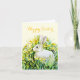 Glad påsk vit vattenfärg. Snyggt handmålat original-påsk-kort. Lite kanin målad med blommor. En söt vår hälsning för en vän!