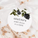 Halloween tema gotisk bröllopsdusch favorit tagg med illustration av svarta rosor på en vit bakgrund.