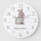 Vit Grått Bunny Nursery Decor Wall Clock Stor Klocka