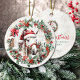 Julprydnad med en vacker grått, vit färg-häst i julklumpar och berryssar med svuren vit lada-bakgrund. Personlig, häst, djur, ridsporslisk julprydnad (text på baksidan).