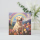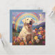 Ett personligt vitt eller gult Lab-minnessympatikort med en vacker målning av en glad gul Labrador på en himmelsk kulle med en vacker regnbåge ovanför. Symboliserar att Labradorn har passerat regnbågsbron till hundhimlen. Du kan anpassa det med din egen hunds namn eller annan text på baksidan av kortet. Gör en speciell minnes- eller sympatigåva till alla Lab-hundälskare om deras kära hund har gått bort.