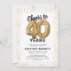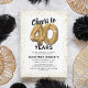 Förhöj din milstolpsfirande med våra eleganta inbjudningar till 40-årsfest! Med en mångsidig vit bakgrund, gnistrande guldglitter, fyrtio charmiga guldheliumballonger och en trendig 40-års text som är enkel att anpassa! Lägg till din unika touch på denna speciella dag och låt dina gäster se fram emot en minnesvärd händelse.