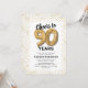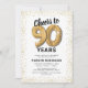 Förhöj din milstolpsfirande med våra eleganta inbjudningar till 90-årsfest! Med en mångsidig vit bakgrund, guldglittrande glitter, nittio charmiga guldheliumballonger och en trendig 90-års text som är enkel att anpassa! Lägg till din unika touch på denna speciella dag och låt dina gäster se fram emot en minnesvärd händelse.