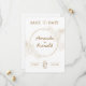 Skapa ett fantastiskt första intryck med det eleganta vita guld bröllopskortet "Save the Date". Med en utsökt vit blomdesign kompletterad med glänsande guldfärgade accenter sätter detta kort vacker tonen för er kommande bröllopsdag. Den minimalistiska men ändå lyxiga estetiken säkerställer att er underrättelse är både tidlös och fängslande.