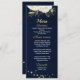 vackra vita blommor och guld löv elegant, marinblått bröllop-meny. Uppgifterna om glitter simuleras