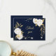 romantiska vita blommor och guld löv botaniska marinblått tackkort