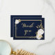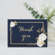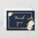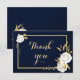 romantiska vita blommor och guld löv botaniska marinblått tackkort