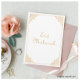 Eid Mubarak Julkort. Elegant vitt färgkort med en vintage-dekoration i ramen. En lyxig design att skicka ut till muslimska familj och vänner för den islamiska Eid al-Fitr-högtiden. Anpassa all information som skrivs. Tomt kuvert ingår.