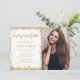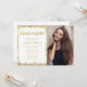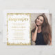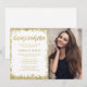 Moderna vita och gyllene falska glitter Quinceanera-fotoinbjudningar. Dessa trendiga söta 15-inbjudningar är lätta att anpassa för din fest. Designen är platt tryckt illustration/grafik - INTE ÄKTAT GULDGLITTER.