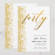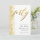 En inbjudan till vita och guld, glam, modern, elegant och chic 40-årsfester med de "fyrtio" ord som är täckta av guld-folie (detta är en digital effekt), moderna kalligraftecken och typografi i ett guld-hue, samt en geometrisk motiv inspirerad av glitter: guld och rosa punkter. En chic, tidlös design för en kvinna på hennes fyrtioårsdag.
