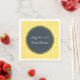 Punktdesign för vit och gult polka. Utformningen har vit polka dots på gulten och en grått-kolcirkel i mitten. Möhippa pappra servetter.
