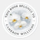 Bokplåtsetiketter med en målning av vita blommor av typen falaenopsis orchid och anpassadet "this bok tillhörs to" och ditt namn.