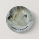 Knappen god jul med ett serenfoto med en vacker vit häst med en liten fågel vilande på nacke. En magisk vintersnöfall ge ger bilden en underbar mystisk kvalitet.