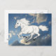 Blandade medier. illustrerade vita hästgaloppar genom ett grumligt himmel (foto).