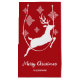 Desteis ursprungliga silhuettdesign av en hoppande hjort tillsammans med lite dekorativ snöflingor. Bakgrunden färg är röd. Det finns också två anpassningsbara textområden.