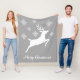 Vit Hjort på Grått med Snöflingor & text Fleecefilt