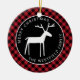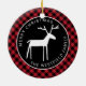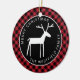 På denna rustika röda buffel-rutiga julgransprydnad är en vit folkkonst hjort centrerad i en svart cirkel, med ditt namn och "God Jul" böjt runt illustrationen i vit sans serif-typografi. Du kan enkelt ändra exempeltexten med dina egna detaljer.