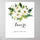 Denna gröna vita höstblommiga skylt för bröllopsfavoriter är perfekt för ett rustikt bröllop eller en brudshow. Designen har eleganta akvarell vita peonior med grön lövverk.