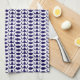 Vit hundben Herringbone Mönster Marinblå Kökshandduk