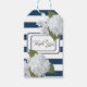 Vit Hydrangea-Blommigt Modern Elegant Navy Stripe Presentetikett