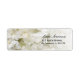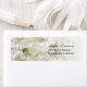 Anpassa elegant Vita Hydrangea-Blommigtens Returetiketter med ditt namn och adress. De här returadresserna på anpassningsbarnas blomsterdekaler har ett foto på en blommigt som är nära och som innehåller vita blad för blommar av vattenblommor.