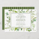 Den här bröllopsinbjudan med vackra, kloka, månghuggna vita vattendrag och en fantastisk grönt och koordinerande grönt som är strimlad bakåt är perfekt för vilken trädgård, botanisk, blommigt, romantisk, utomhuslig, rustik, vintage eller formlig bröllop. Det är ett utmärkt val för vilken vår eller sommarbrud som helst. Gör det enkelt till din egen genom att välja Anpassa den här mallen och skriva in informationen. Om några sekunder visas dina unika och bedövande inbjudningar!