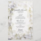 Anpassa eleganten White Hydrangea Flowers Watercolor Bröllop Menu med uppgifter om den måltid som du kommer att vid din trädgårdsäsong vid möhippa vid party, luncheon, förlovningsfest, bröllop brunch, repetitionsmiddag eller mottagning genom att lägga till sallad eller första kurs, entré eller andra kurs och dessert eller tredje kurs. Anpassa den med namn på briden och trippen, platsen och ceremonin i giftermål. Den här anpassningsbarna i bröllop-menyn i klassformat har ett färgat, digitalt vattenfärgat, färgat blommigt fotografi av vita vattenfärgsblad för blommar av vattenblommor som fäster hörnen med vit bakgrund.