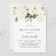I Inbjudningskort för möhippan finns handmålade vattenfärgade vita blommigtar, vattenkraft och vackra grönområden.