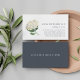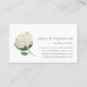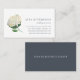 affärskorten för elegant för florister, blommigt, bröllopsfixararna eller andra bröllop-professioneller har en vit vattenfärgsvit blommar som är accentuerad med mjuka grönt löv, med ditt namn och kontaktinformation som är justerad på högerna. Kort återgår till massivt rökfritt blått med en rad anpassningsbar i skarp vit.