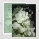 En mjuk vatten-färgbild av vackra rena vita Hydrangea-blommar åtföljer er begäran om att ni vänner och familj ska närvara vid det speciellare evenemanget! På framsidan, Bride & Grooms initialer. Tvärtom, en palest grönt av Hydrangea-blommarna och fullständigt personifierbara inbjudningsuppgifter. Matchar "spara datum"-kort, magnet, inbjudningskort för möhippa och porto tillgängliga!..