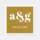 Vit initialer-typografi på guldbrunt bröllop pappersservett