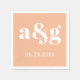 Vit initialer-typografi på korallpersika bröllop pappersservett